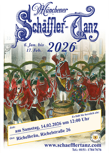 Das Richelbräu läd ein zum Schäfflertanz am Samstag, den 14.2.2026 um 12.00 Uhr vor der Richelstrasse 26.